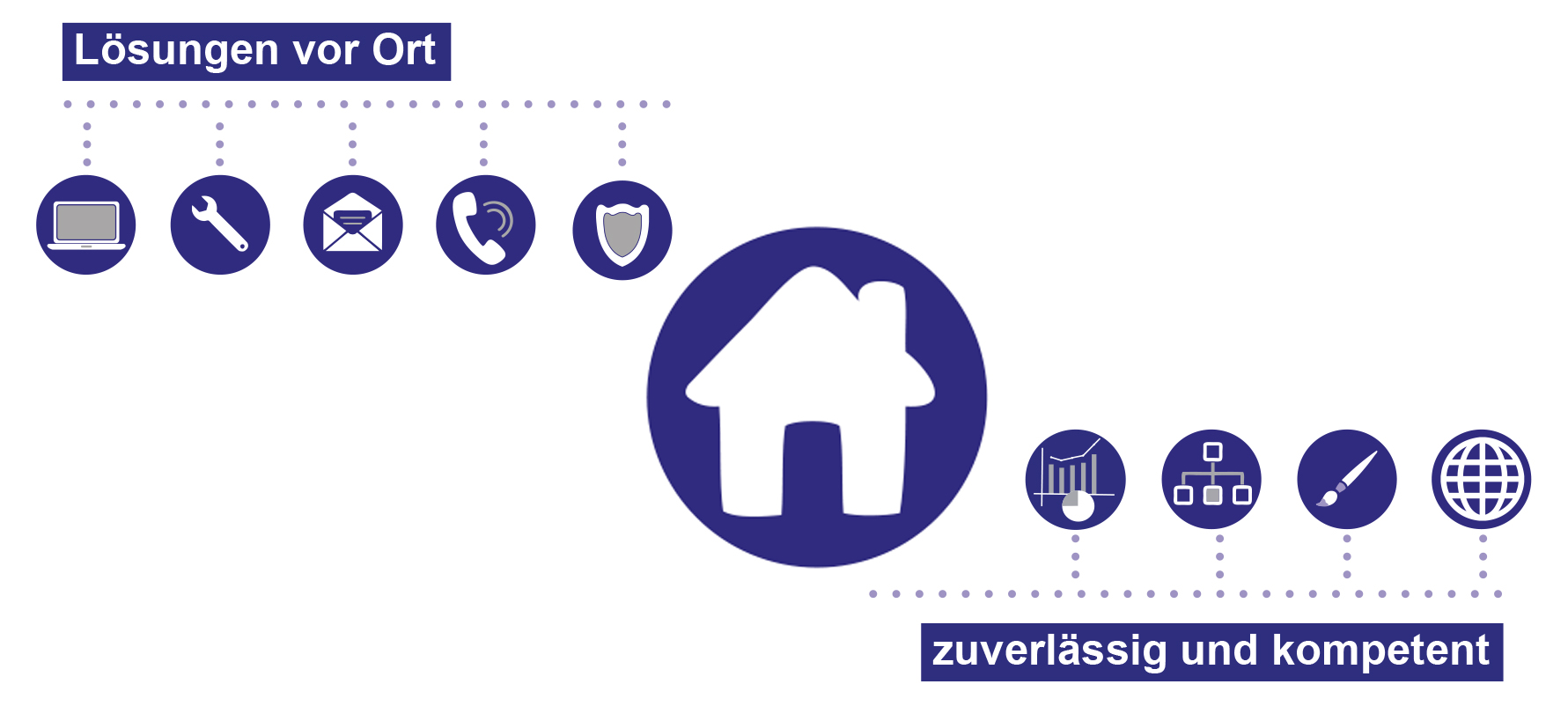 Damit Ihre EDV optimal funktioniert, ist eine systematische Planung notwendig. Sowohl eine sinnvolle Platzierung der Arbeits-stationen als auch die korrekte Konfiguration der einzelnen Komponenten sind für den optimalen Arbeitskomfort unerlässlich.