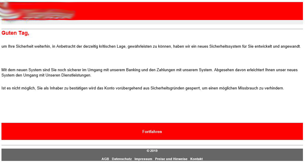 Diese E-Mails geben sich als Mitteilung einer großen Bankfiliale aus und werben mit einem Sicherheitsupdate, wwelches das Onlinebanking angeblich noch sicherer gestalten soll. Miese Falle!